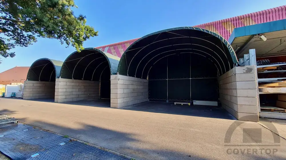 - Großzügige Überdachungsfläche 6 × 6 m – ideal für Container-Bereiche und Arbeitszonen