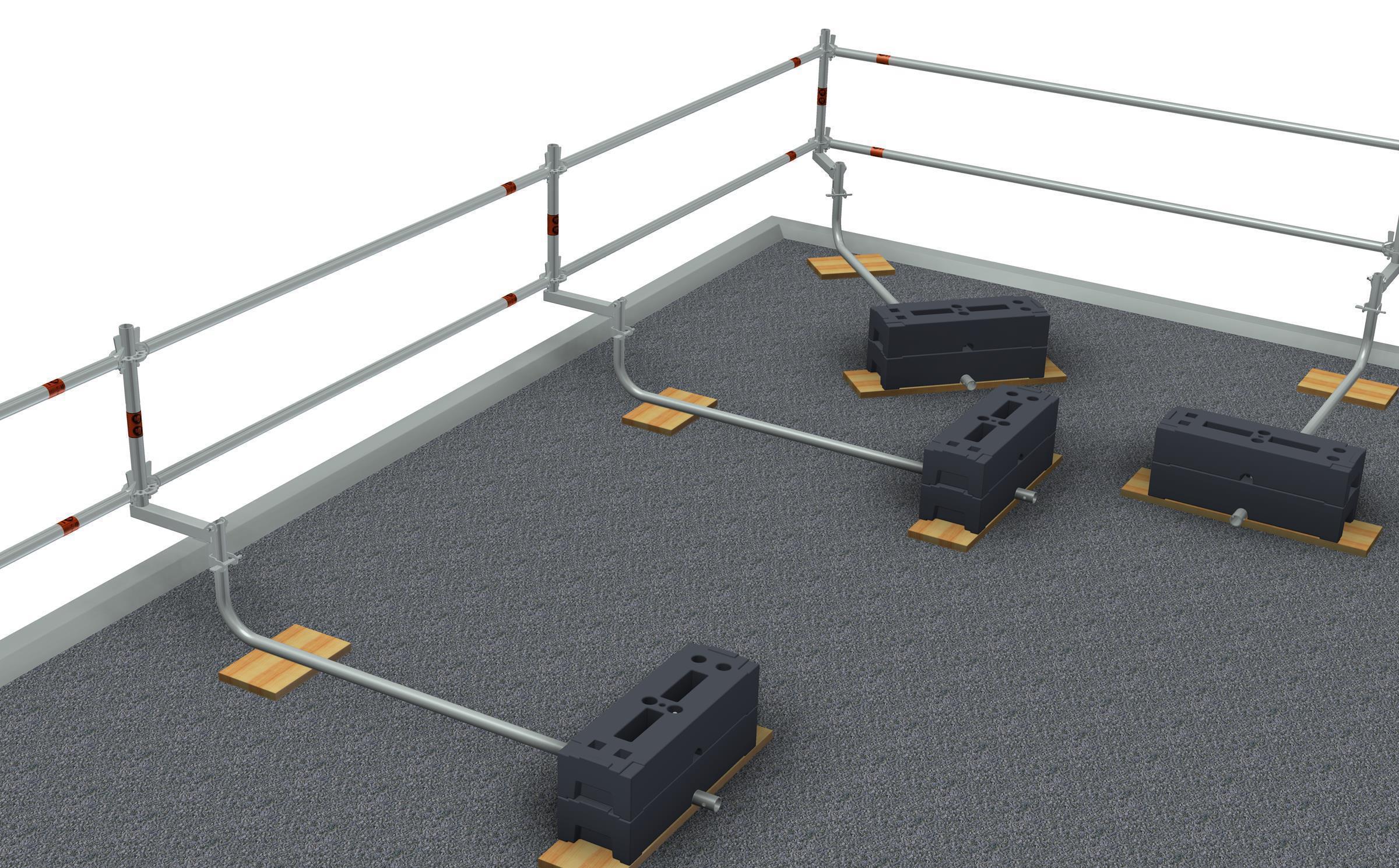 – Das MJ-Flachdachgeländer bietet in Verbindung mit Horizontalriegeln des Modulgerüstes COMBI eine einfache und kostengünstige Lösung zur Sicherung von Arbeitsplätzen auf Dächern mit mehr als 3,00 m Arbeitshöhe
