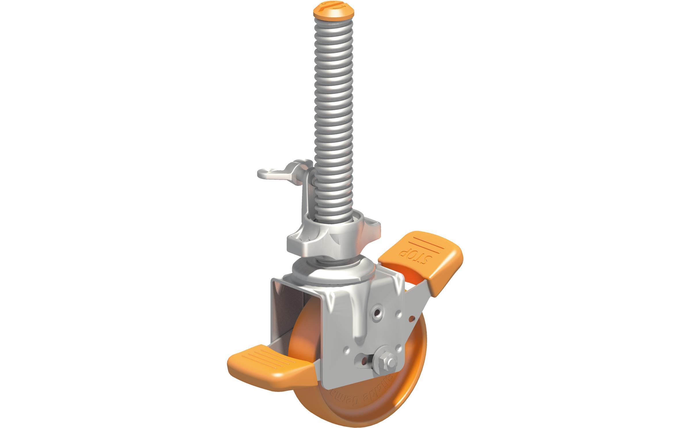 - Rolle mit Doppelbremshebel und Lastzentrierung im gebremsten Zustand