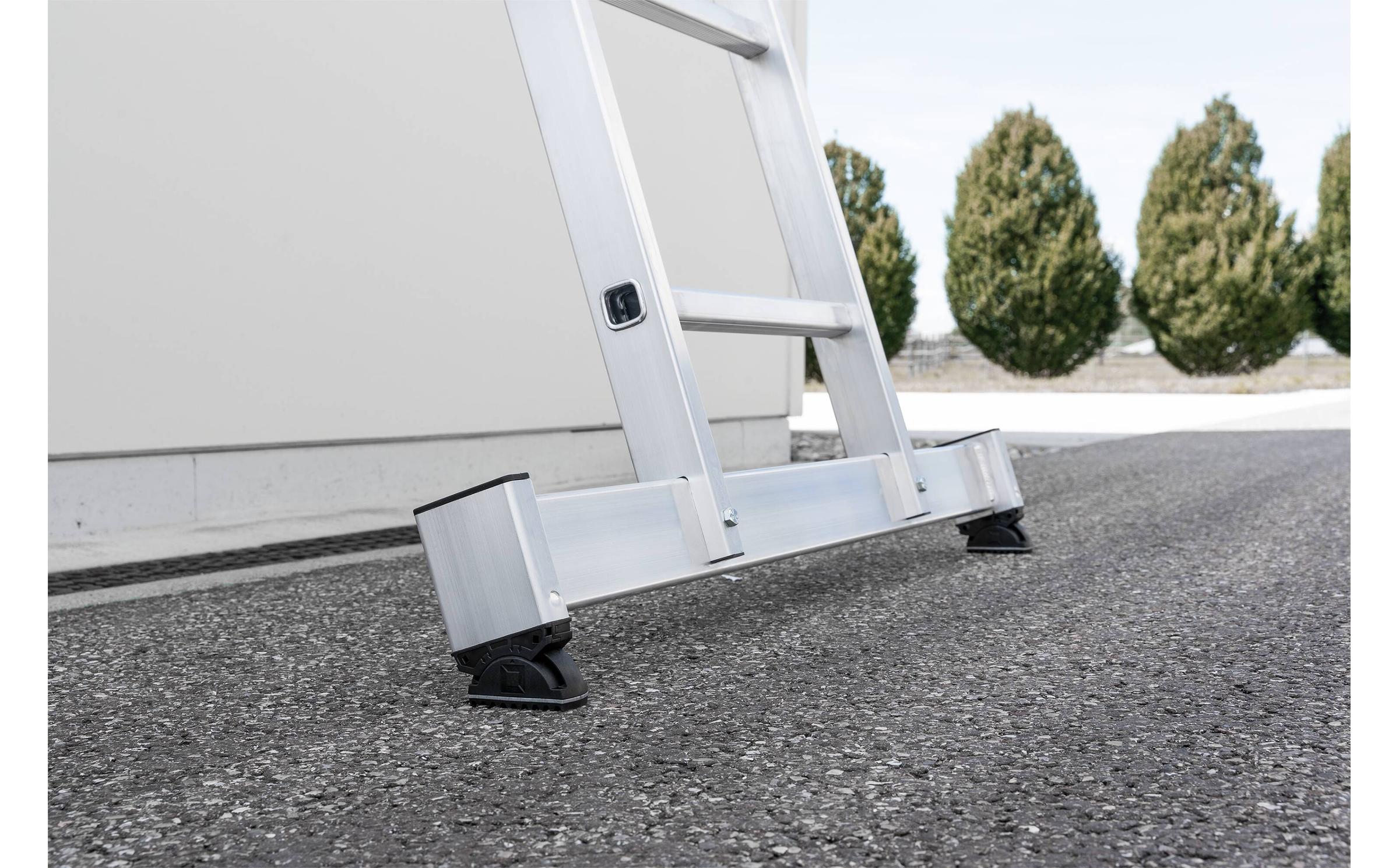 - nivello® Traverse in optimaler Breite zum gewählten Produkt für einen extra sicheren Stand und Aufstieg dank nivello® Leiterschuhe mit 2-Achsen-Neigungstechnik, Anstellwinkel-Kontrolle und wechselbaren Fußplatten. Die Traverse liegt lose bei und wird zweifach am unteren Holmende verschraubt