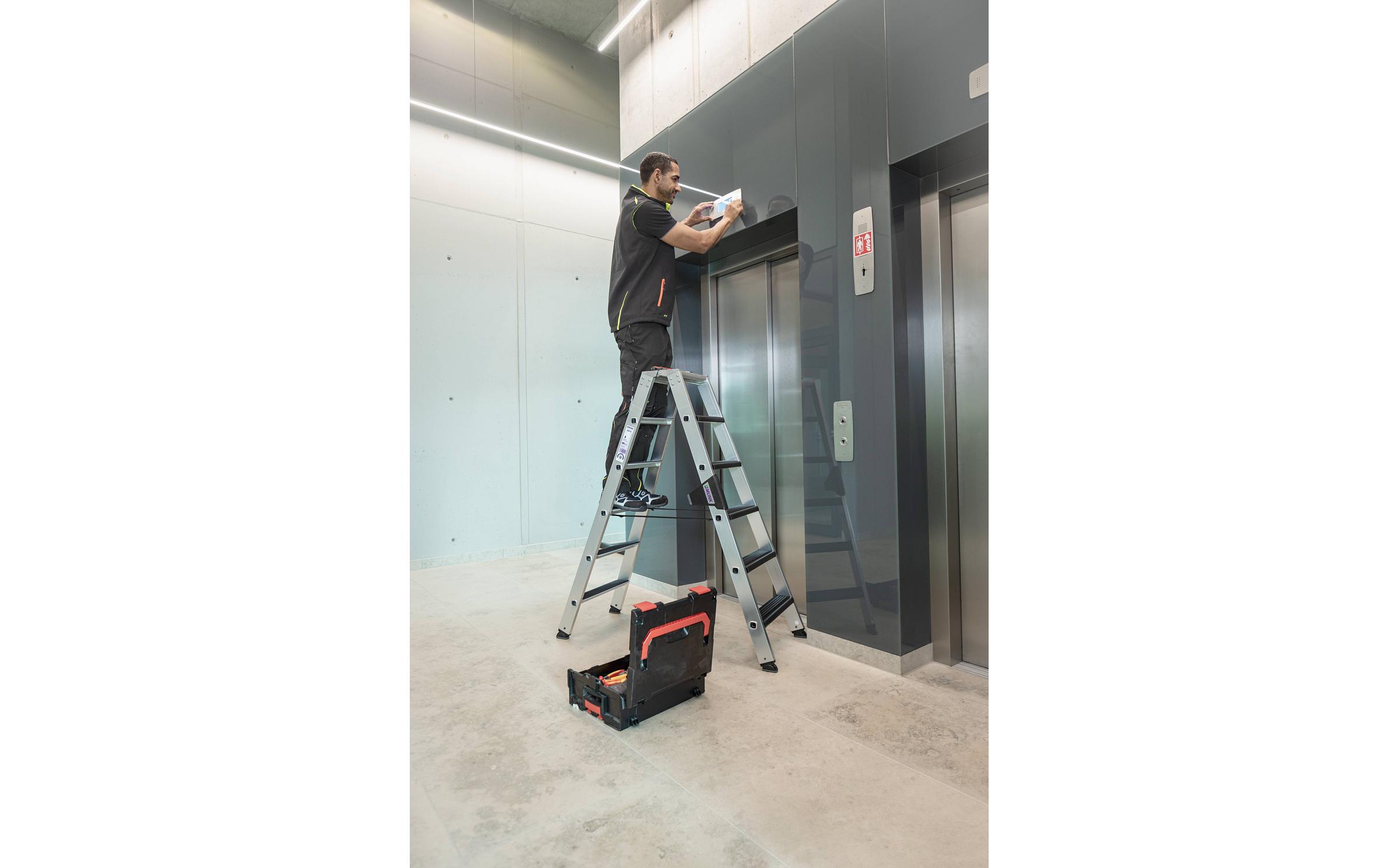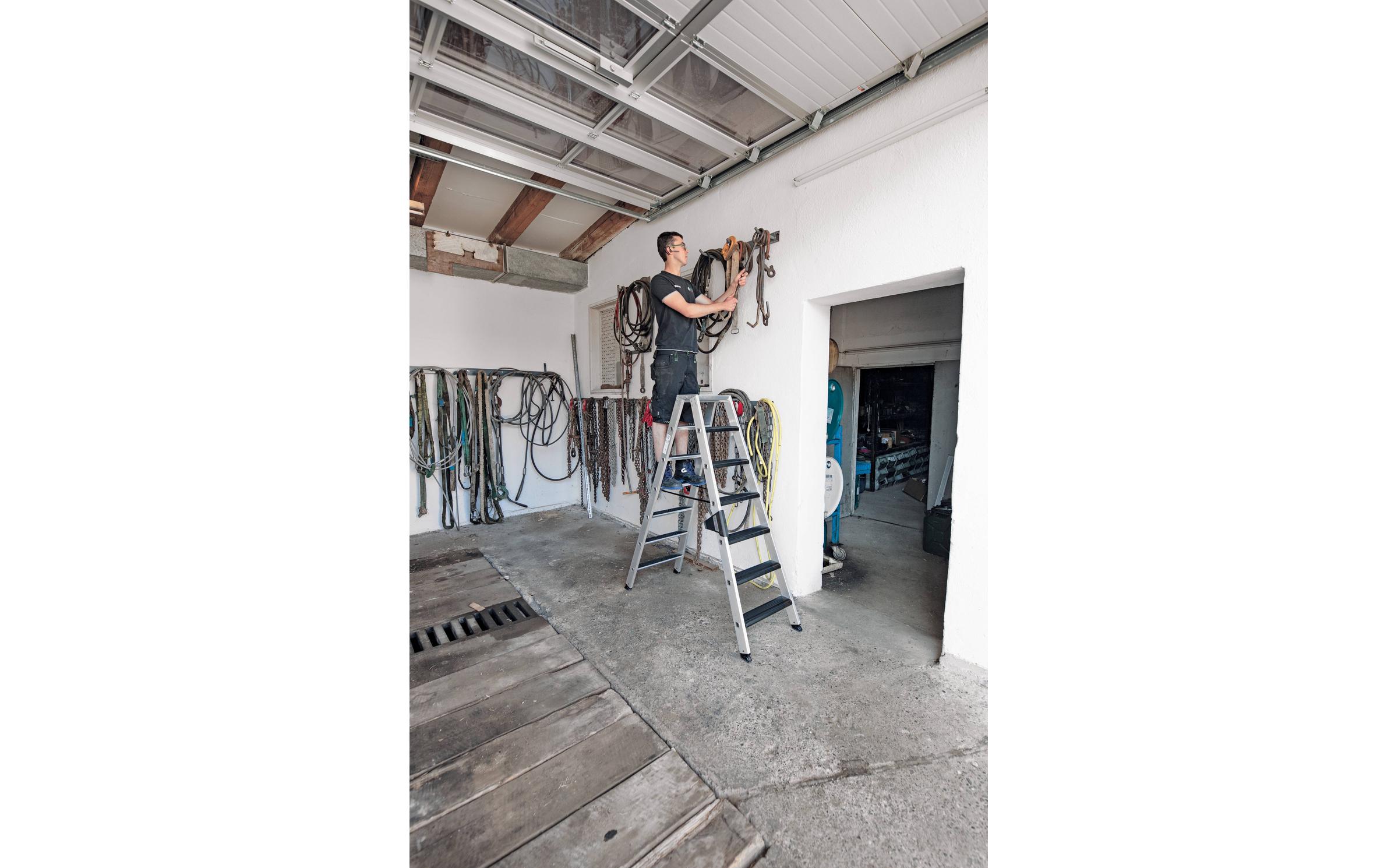 - Ab sieben Stufen: Spreizsicherung mit zwei hochfesten Polyestergurten