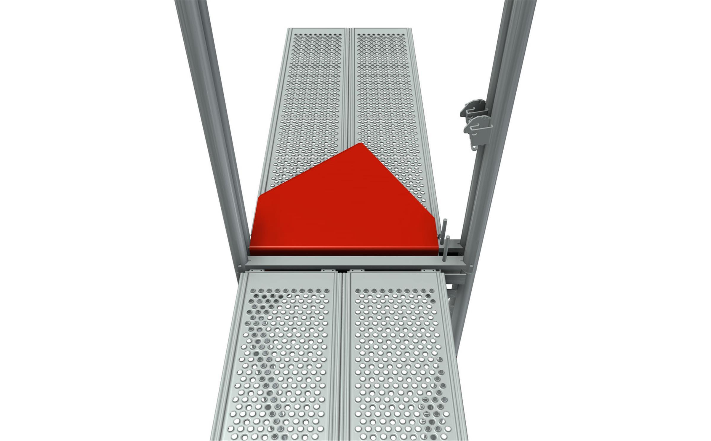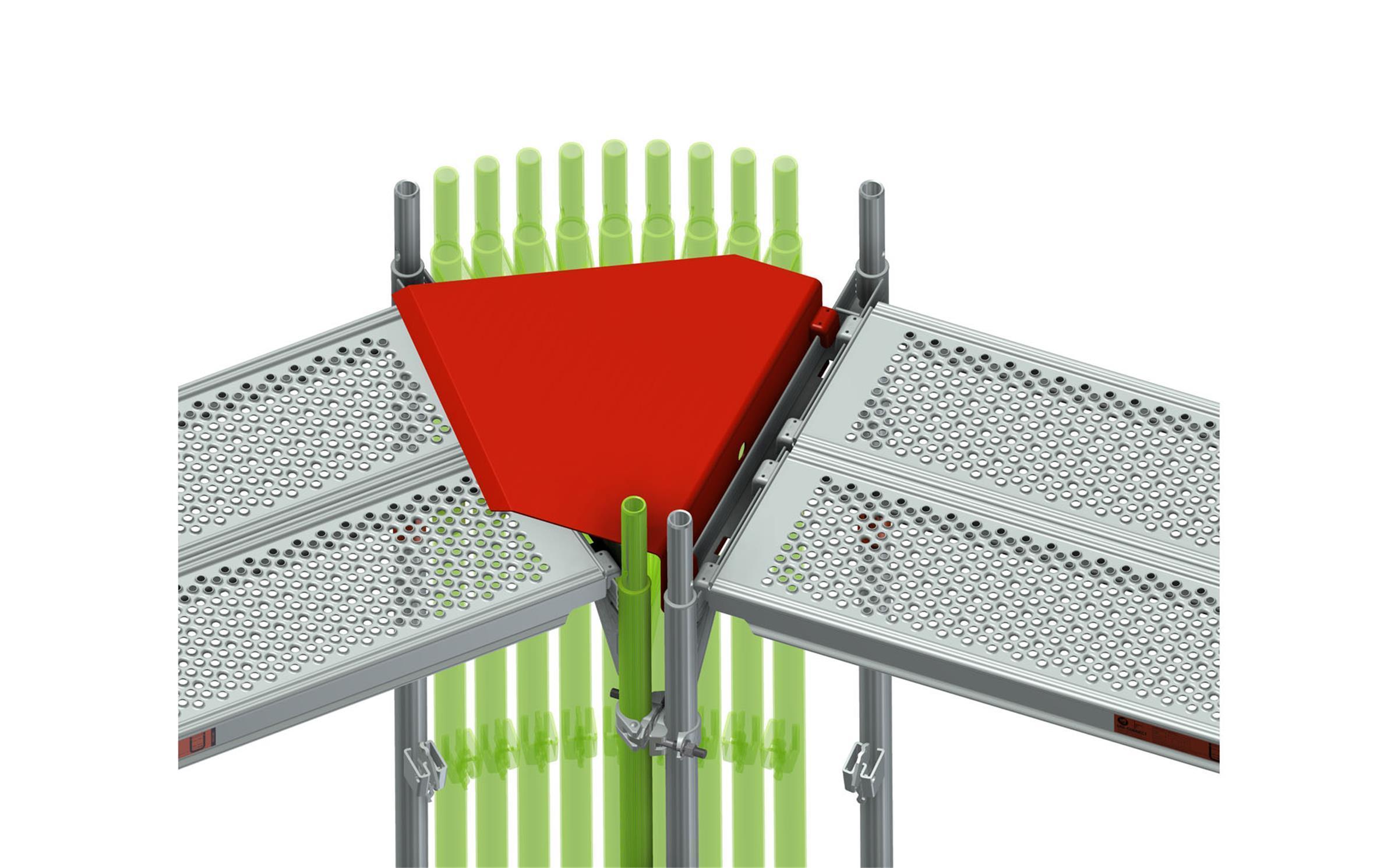 – Rutschhemmender Belag mit Belagsicherung für spaltfreien Aufbau bei Rundgerüsten 0 bis 45°
