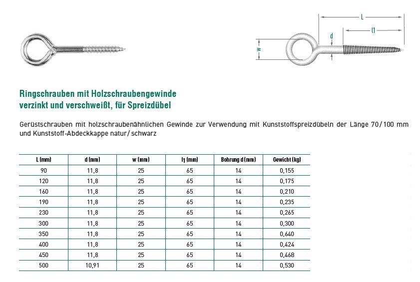 Durch die extra lange Ausführung von 500 mm eignen sich diese Ringschrauben optimal für besonders anspruchsvolle Befestigungen in Beton und Mauerwerk. Sie sind kompatibel mit Kunststoff-Spreizdübeln 70 mm / 100 mm sowie Kunststoff-Abdeckkappen in natur oder schwarz und für alle Fassaden-Gerüstsysteme geeignet.